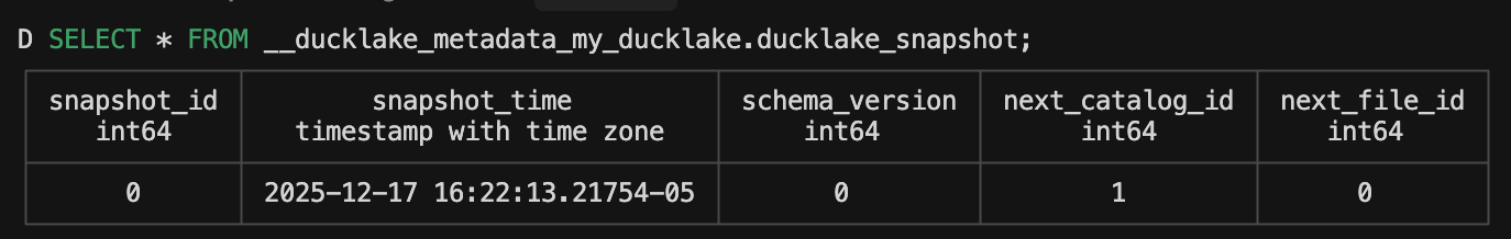 FROM __ducklake_metadata_my_ducklake.ducklake_snapshot dls